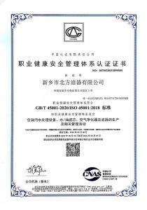 當前位置 : 主頁 > 關于我們 > 榮譽資質 -北方濾器職業健康管理體系認證證書中